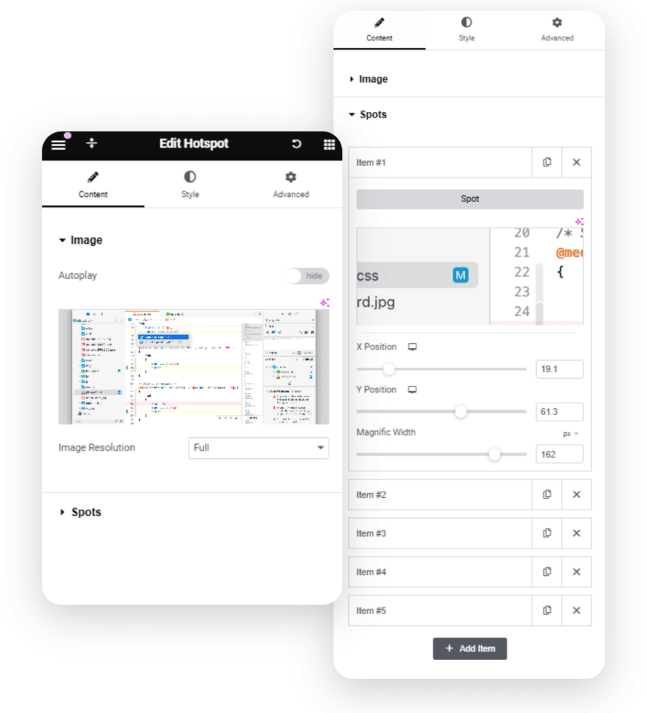 Try the Image Hotspot widget live in our Playground. Add magnify spots, adjust their positions, customize zoom levels, and refine the base image to craft an interactive experience your audience will love.